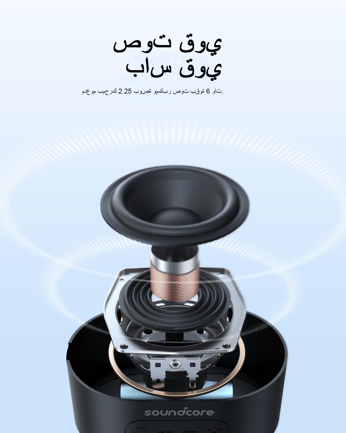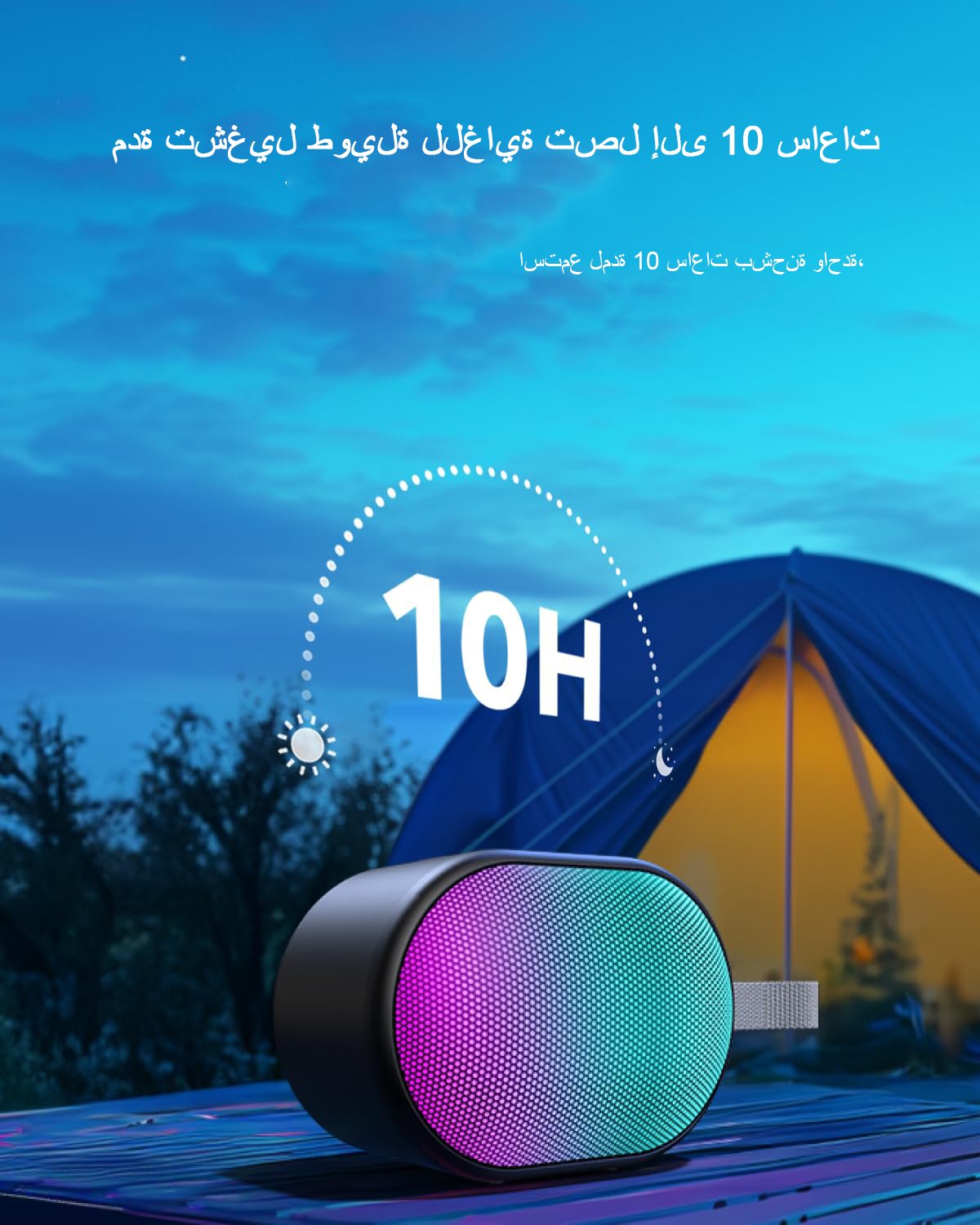 ساوند كور مكبر صوت بلوتوث لاسلكي صغير محمول من بايرو مع عرض ضوئي لكامل الجسم، 6 واط، وقت تشغيل 10 ساعات، اقتران تي دبليو اس، اضواء RGB، مدخل AUX، فتحة بطاقة، USB-C، بلوتوث 5.3، محمول للفناء الخلفي