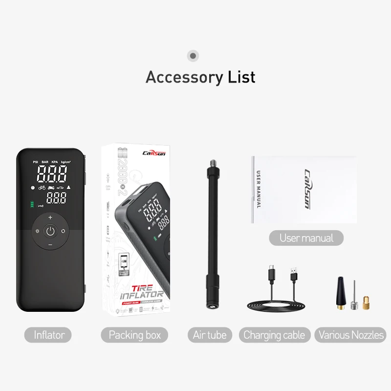 CARSUN Rechargeable Air Pump Tire Inflator Portable Compressor Digital Cordless Car Tyre Inflator For Motocycle Bicycle Balls